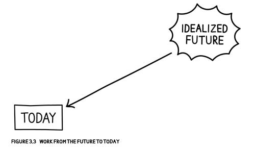 The future will look a lot more like today than we think. The exercise for step two is to make the future your own by putting your small team into the right state of mind. To do that we are going to use an exercise that the futurists like to call, remembering the future. To get there, we need three pieces: A place, a client, and an event.