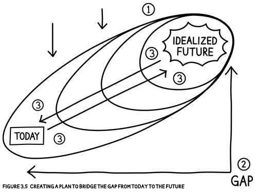 On the white board, Figure 3.3, future to today, helps describe the process thus far.