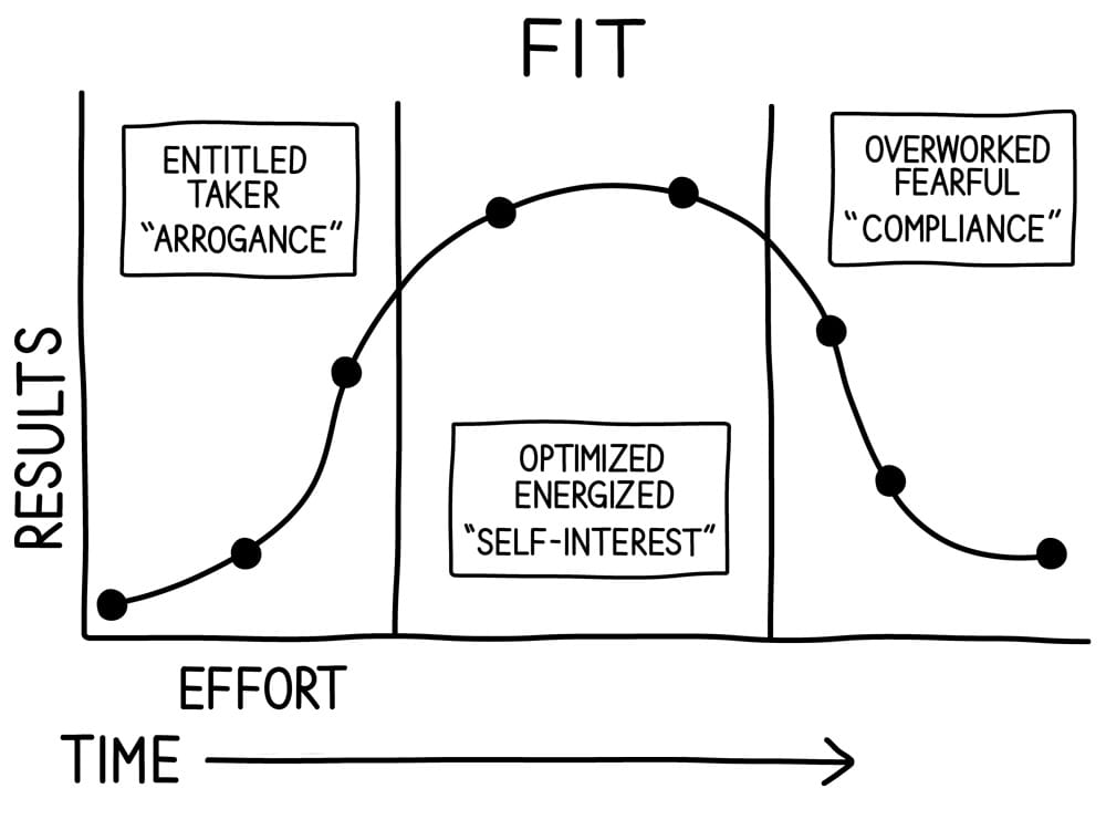 If we push too hard for too long, our results suffer. The opposite is doesn't work either: if you don't put in effort, you don't get results. Take a look at my old FIT graphic. To stay optimized and energized, aim for the middle zone. Apply your self-identified strengths to work and take time off, away from work. Sounds easy, but it takes focused effort.