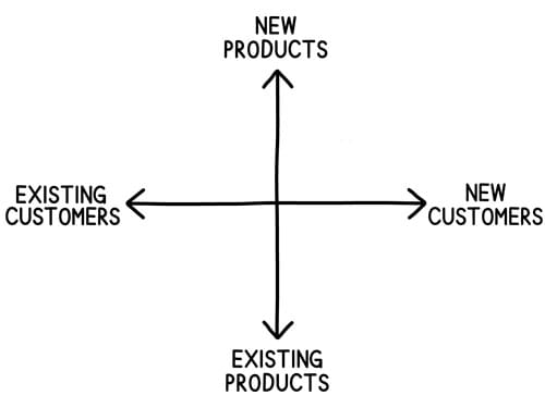 I get accused of taking big ideas and making them sound too simple and this teleseminar is no different. In it I explain how I use a new vs existing customer and product grid to prioritize activity and frame a discussion. You can see the double axis here: